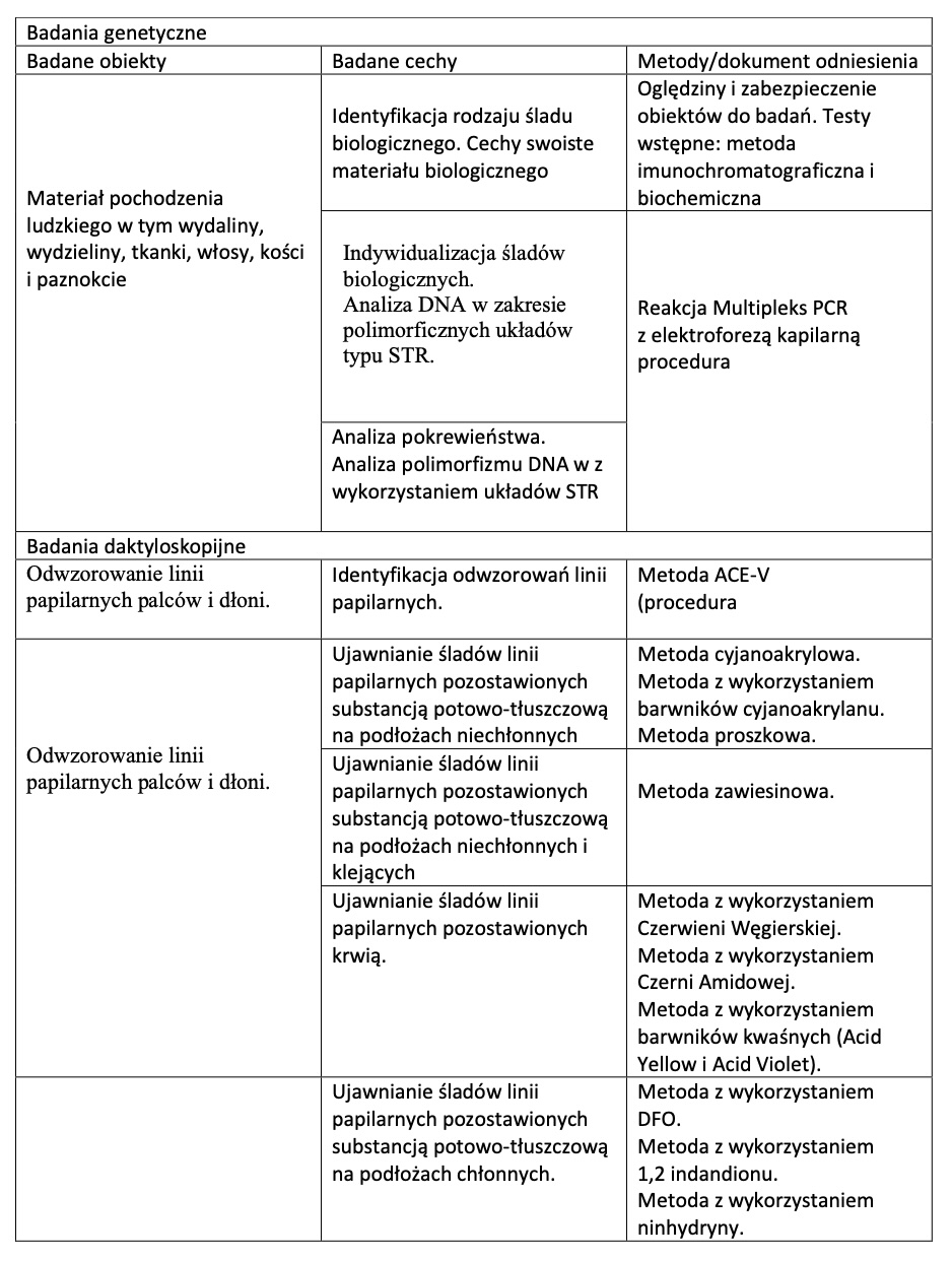 Zakres wykonywanych badań